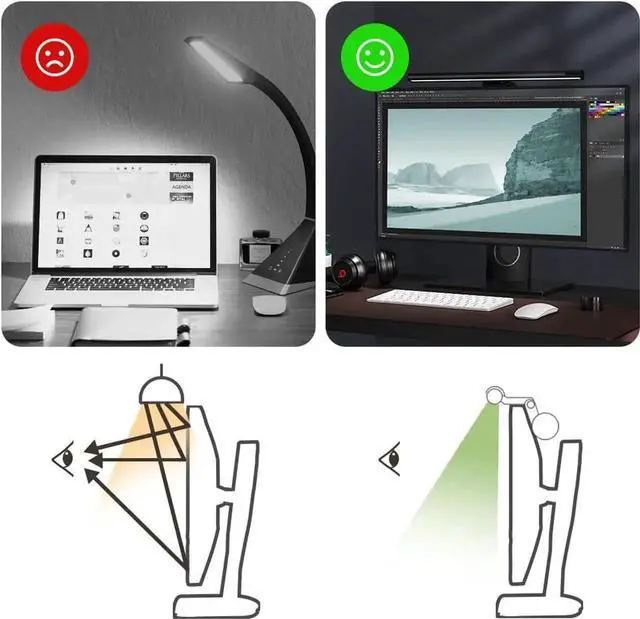 Save Desktop SpaceThe monitor lamp can be stably placed on the top of the monitor, saving a lot of space for your desktop. Very suitable for using on the desk in your office or at home.