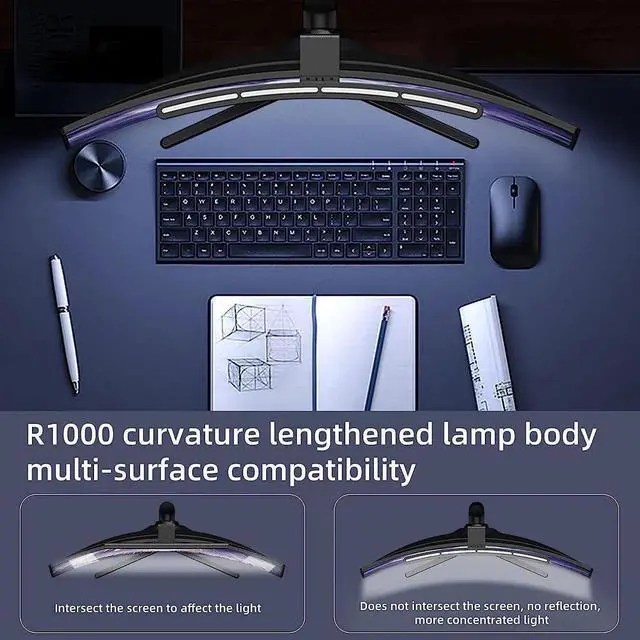Curved screens of different sizes often have slightly different degrees of curvature. The curved monitor light has a special design, which allows you to easily and neatly fix it to the top of most curved screen displays without causing any display disturbances reflective. You can also easily adjust the lighting head and angle according to your preferences and needs at any time.