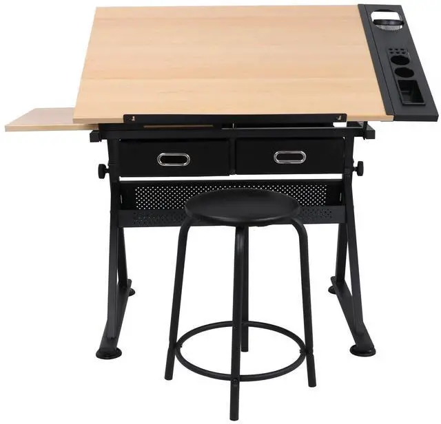 Versatile and practical:The large table surface and an additional tablesurface offer plenty of space for you to plan out projects or lay out your drawingtools.Children can paint and study with this desk at home, in office it can be used as drafting desk.