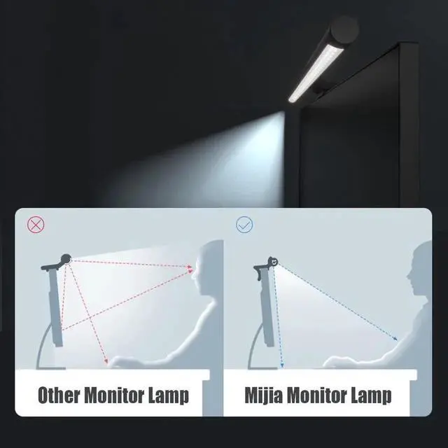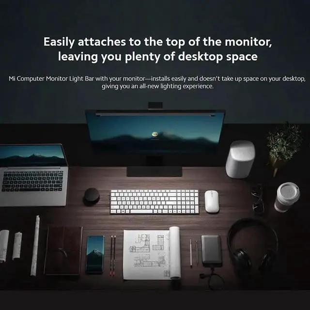 • Mi Computer Monitor Light Bar: Extra computer lighting just for you. No screen reflection* Magnetic rotation* Doesn't take up space* Metal body* 2.4-GHz wireless remote control. Easily attaches to the top of the monitor, leaving you plenty of desktop space: Mi Computer Monitor Light Bar with your monitorinstalls easily and doesn't take up space on your desktop, giving you an all-new lighting experience.