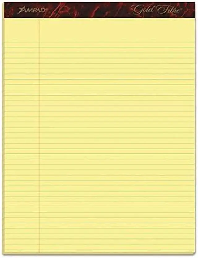 Ampad/Div Of Amercn Pd/Ppr Gold Fibre Pads, Narrow/Margin Rule, Ltr, Canary, 50-Sheet Pads/Pack, Dozen