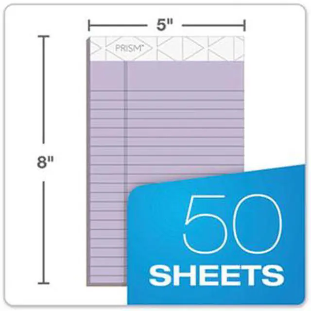This smaller, portable size is ideal for quick notes meetings. Sturdy backs provide firm writing support. Perforated sheets detach easily for a neat tidy page. Proudly made in the USA. Orchid. 5" x 8", Jr. legal ruled. 50 Sheets. 12 Pack.