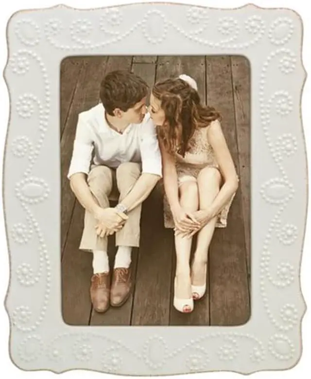 Ornate edging and embossed detailing in stoneware make this French Perle frame by Lenox a beautiful way to display your cherished photographs.