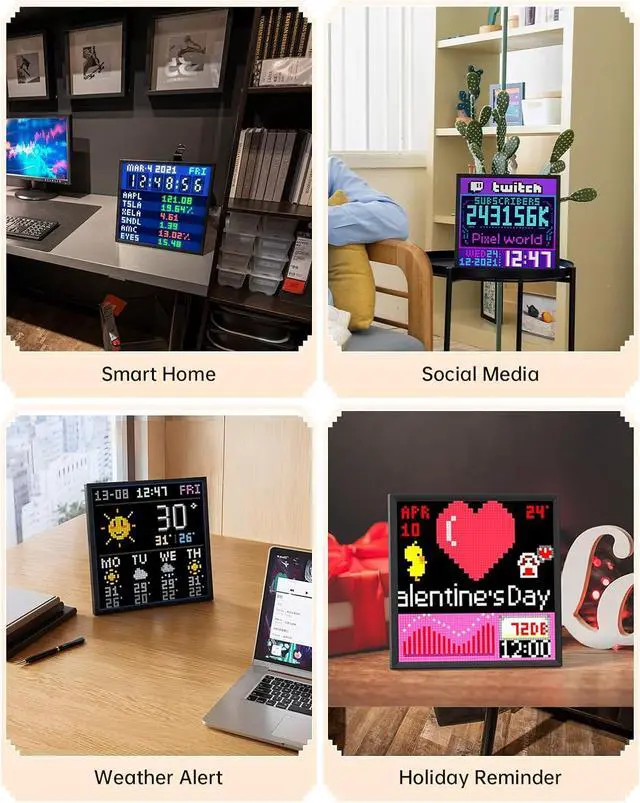 Animated Displays & Themed Content: Display animated clocks, pixel messages, and themed designs for gaming setups, holidays, or everyday mood changeseasy to switch with a tap in the app.