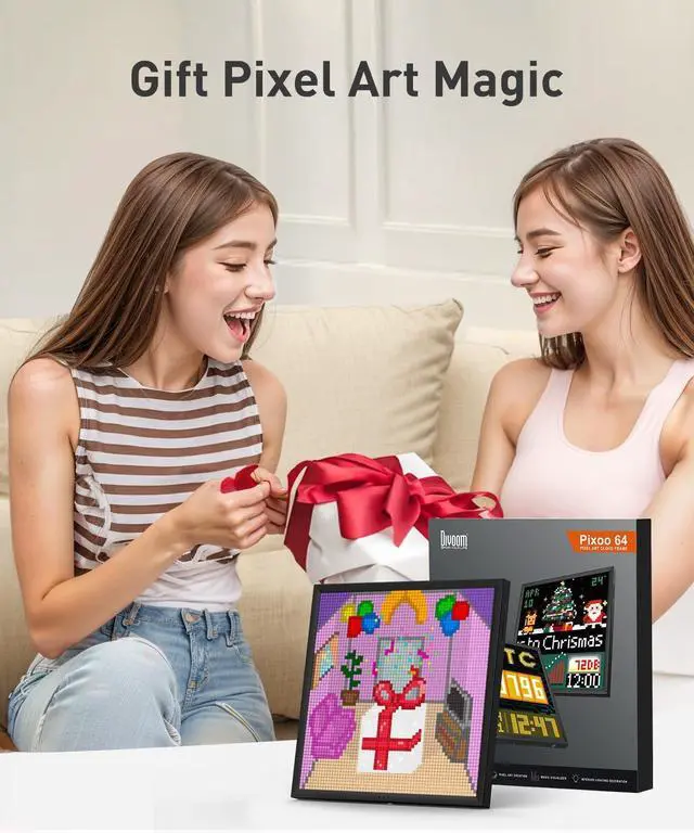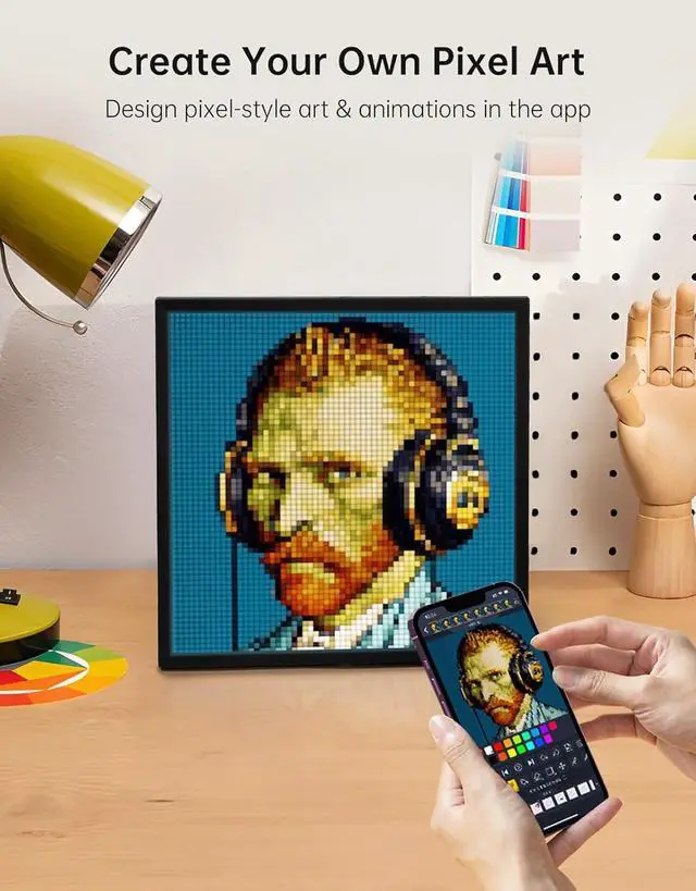 Pixel Art Display for Desk & Home: The Divoom Pixoo 64 is a 10.3-inch Wi-Fi pixel art display with a 64×64 LED panel, designed for decorative pixel designs, animations, and themed displays in your space.