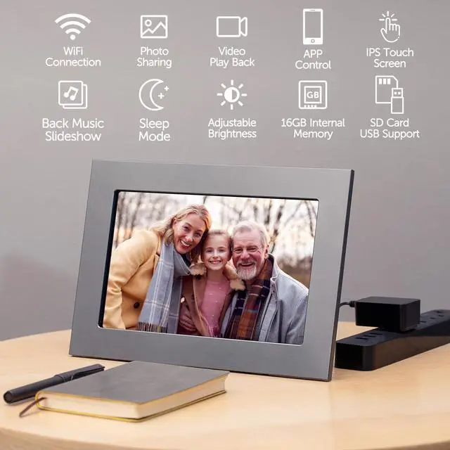 10.1 inch HD IPS Display - 10.1 inch touch screen with 1280x800 resolution, 16:10 aspect ratio and wide angle, your pictures will be displayed clearly and vibrant on a true Ultra HD IPS LCD display. The touch screen allows you to easily set up the frame and manage pictures and videos in your frame.