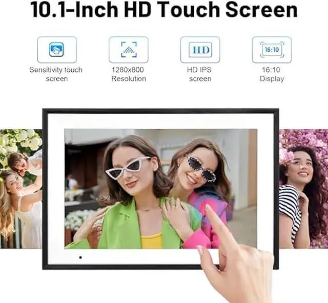 EXTRAORDINARY PICTURE QUALITY: The 1280*800 resolution ensure our smart digital picture frame of a stunning, clear image and provides you an extraordinary visual experience from full angles. The IPS technology enables you to view your most cherished moments with wide viewing angle and accurate color reproduction. The digital photo frame with a built-in light sensor that automatically displays your photos at the perfect brightness for the room and will go dark when the lights off.
