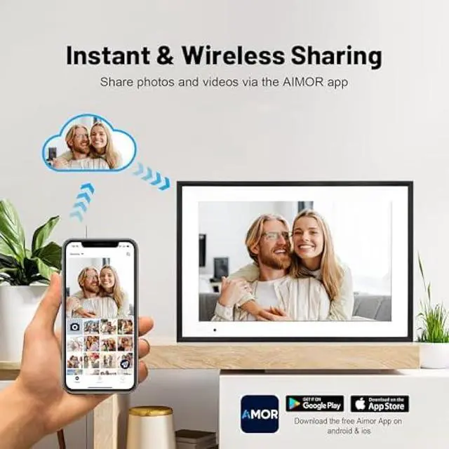 WIRELESS SHARING VIA APP: App AiMOR can work on both Android & iOS phones. You can download it from Google play or App store and connect it with your Anna Bella WiFi digital picture frame. Once done, you are allowed to share photos or short videos (Up to 15sec. ) with your loved ones via App for lifetime with zero subscription fee. This electronic picture frame has a variety of customized settings to meet kinds of your needs, such as slideshow, timer, zoom & crop, sleep mode and more!