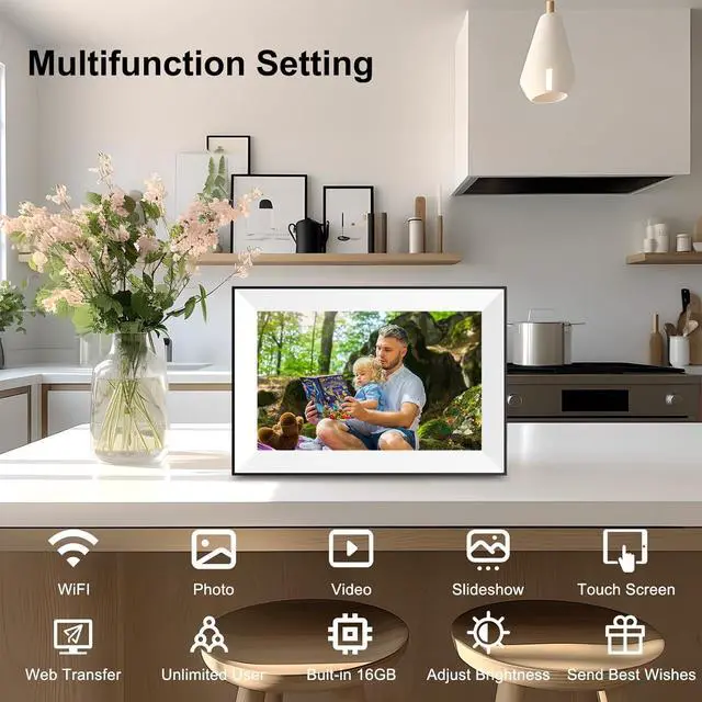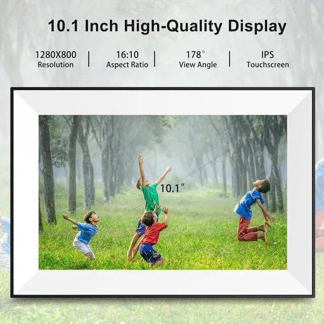 &: With 10.1 inch 1280*800 IPS HD touchscreen, digital frame brings out photo details from every angle, offering an incredible visual treat. Using the electronic photo frames touchscreen, you can easily tweak settings like slideshow order, interval timing, image hiding, caption display, and sleep mode to match your photo viewing style