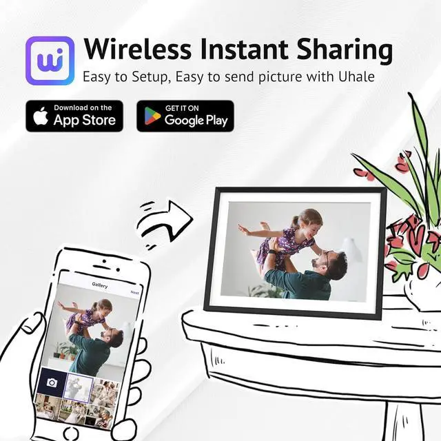 Connect Euphro digital picture frame to a WiFi network and share photos and videos via the free app, available on both Android and iOS. Share the special life moments instantly and privately, creating a seamless connection with your family and friends.