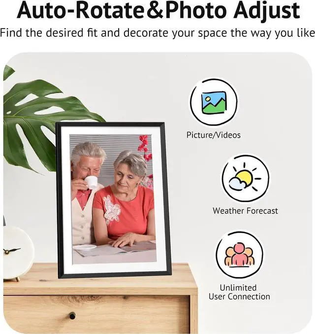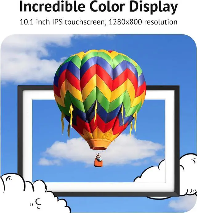 Euphro photo frame comes with a 10.1 -inch 1280*800 IPS touch screen. Whether its a captivating landscape or a heartwarming family party, the picture frame vividly displays all cherished moments. Besides, our smart photo frame can be placed horizontally or vertically and supports multiple picture/video formats.