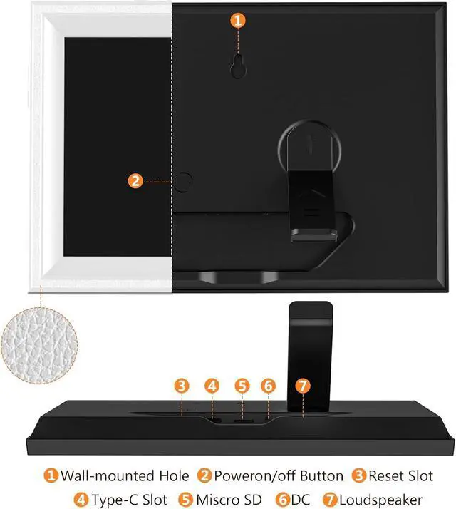 Auto-Rotate and Wall Mountable Functionsdigital picture frame can automatically rotate photos to adjust the direction, allowing you to view the photos in either portrait or landscape mode, and digital photo frame can be wall mounted. photo picture frame digital streamlined and aesthetically pleasing design is also a great decoration.