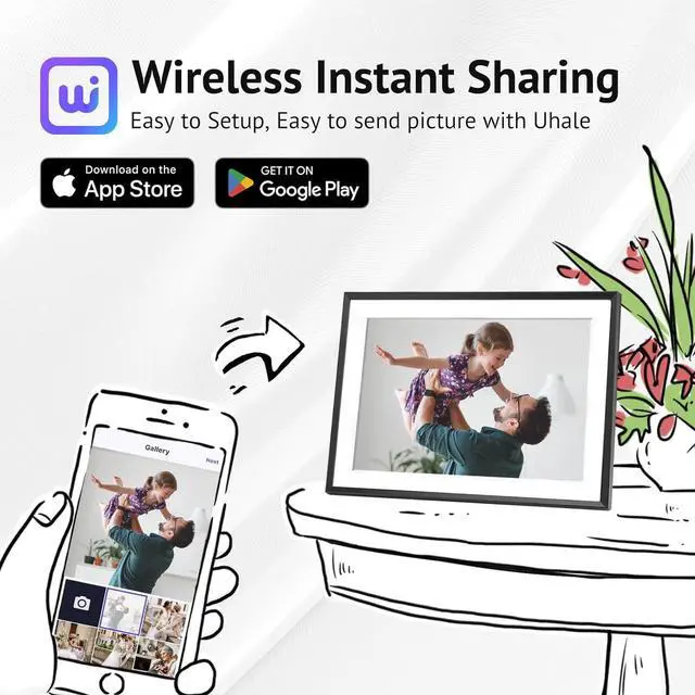 : Connect Euphro digital picture frame to a WiFi network and share photos and videos via the free app, available on both Android and iOS. Share the special life moments instantly and privately, creating a seamless connection with your family and friends.