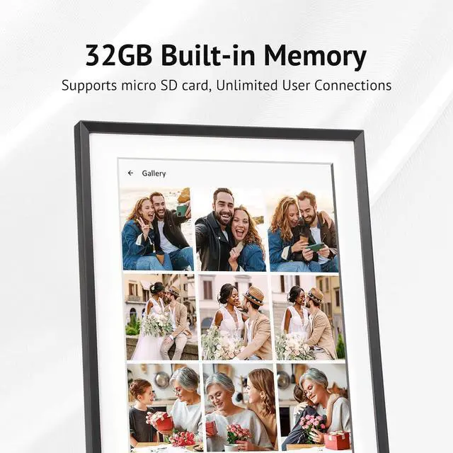 &: Euphro digital picture frame offers 32GB storage capacity and support for expanding Micro SD cards. The frame is able to contain around 60, 000 photos of 300KB/pc, making sure that you can preserve all your precious photos and videos without compromise.