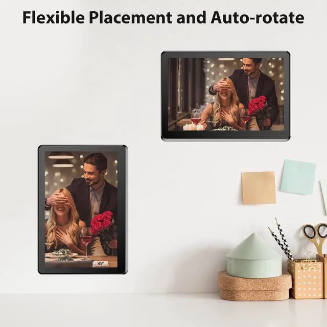 Auto Rotate & Slideshow Mode: The screen of our digital photo frame can rotate automatically. You can clearly view photos or videos in either portrait or landscape mode or even mount it on the wall. The slideshow mode also offers different transition effects and time interval to choose, avoiding visual fatigue. You can enjoy the photos according to your preference.