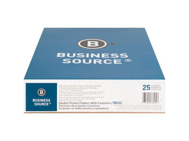 Business Source 2-Pocket Folders 100 Sh Cap Ltr 9-1/2"x11" 25/BX BK 78532