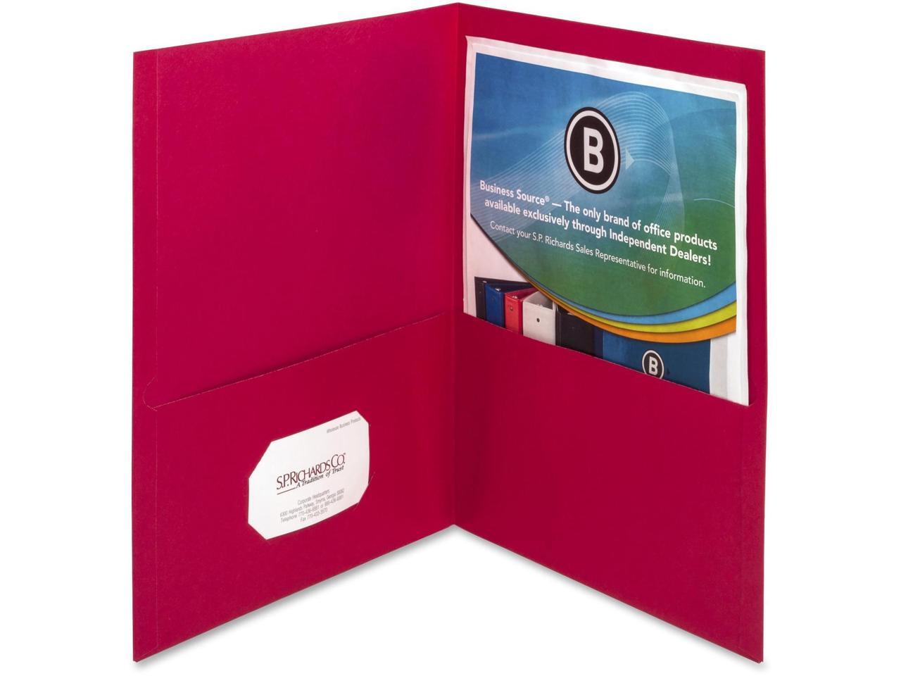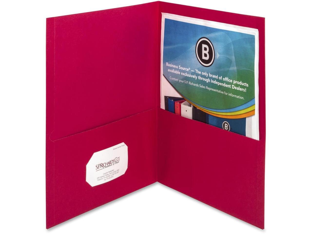 Business Source 2-Pocket Folders 125 Sht Cap Letter 12"x9" 25/BX RED 78494