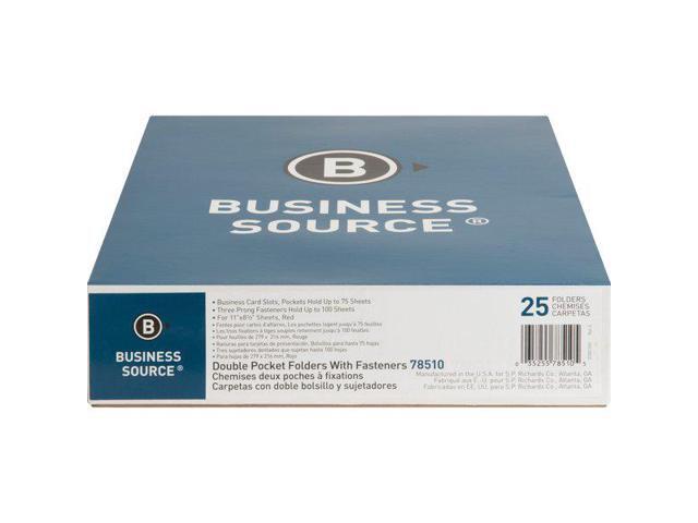 Business Source 2-Pocket Folders 100 Sh Cap Ltr 9-1/2"x11" 25/BX RD 78510