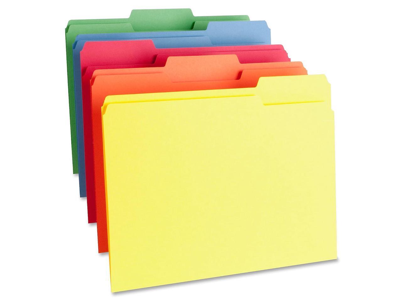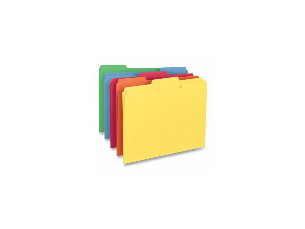 One-ply, 1/3 cut-tabs in assorted positions. 11 point, Assorted color stock.
