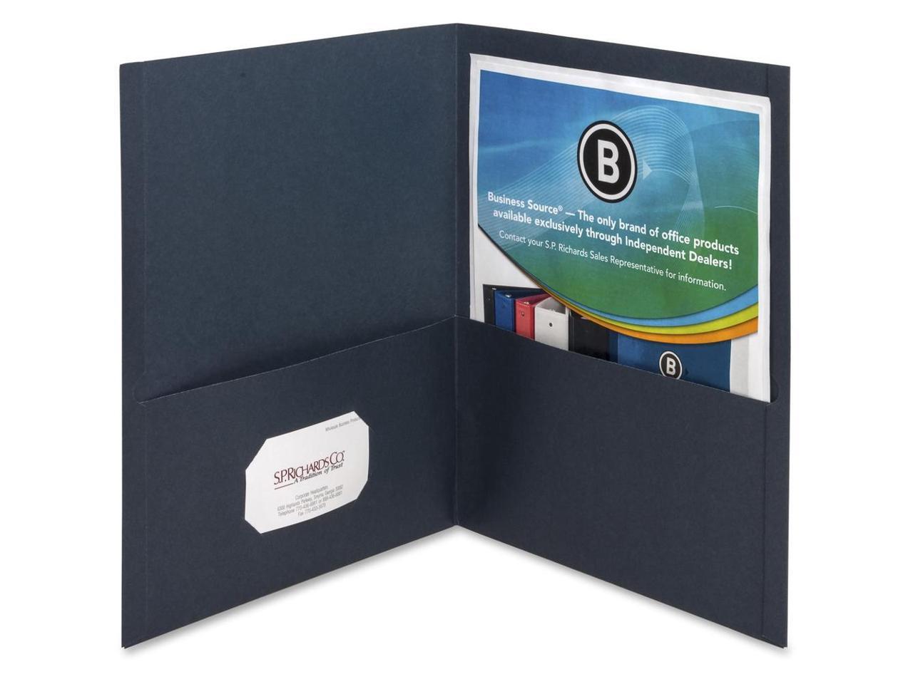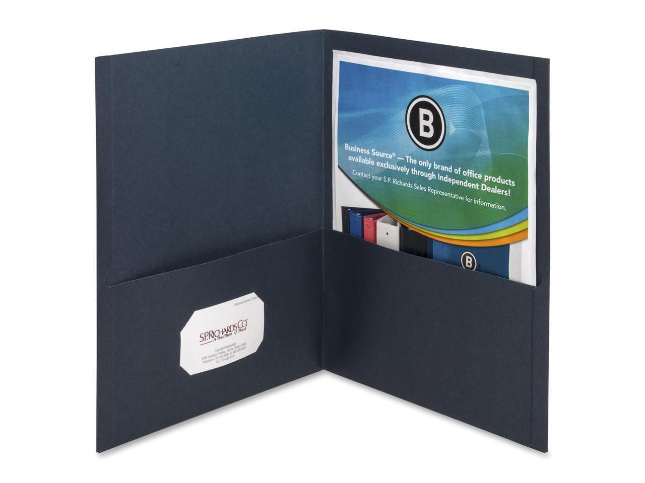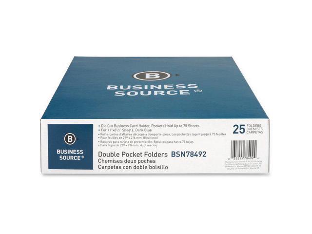Business Source 2-Pocket Folders 125 Sht Cap Letter 12"x9" 25/BX D.BLUE 78492
