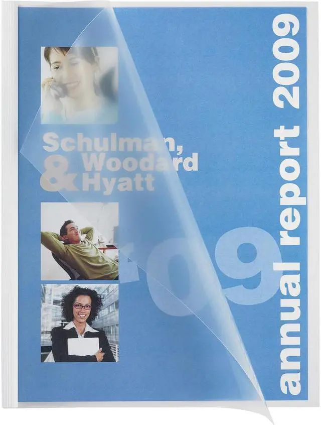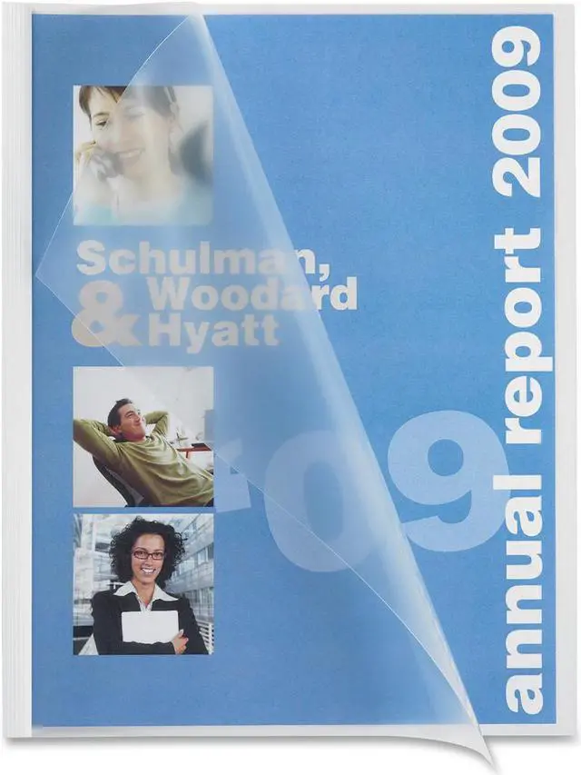 Slide-bind report cover features a white plastic, binding channel to bind up to 1/8" thick of letter-size sheets. The cover is transparent to show off the contents and made of extra-strong polypropylene.