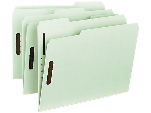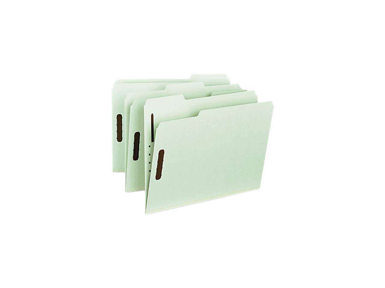 Gray/green 25 pt. pressboard covers with one partition. Heavy-duty folders provide stable writing surface and make files easier to handle.