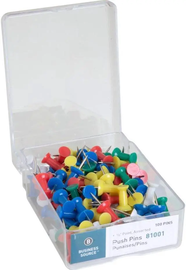 Pushpins, 3/8" Point, 1/2" Heads, 100/BX, Assorted