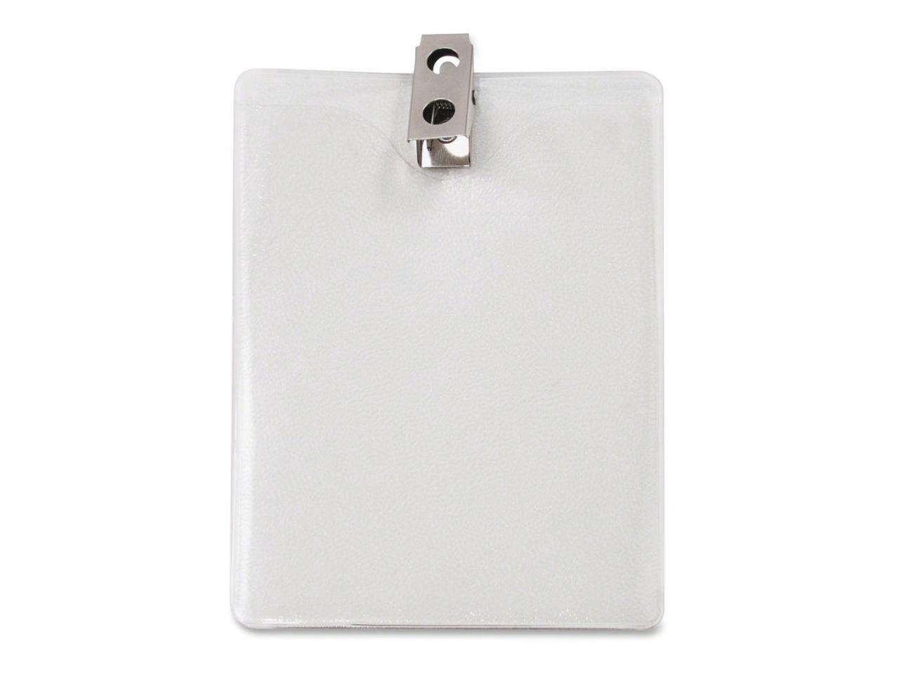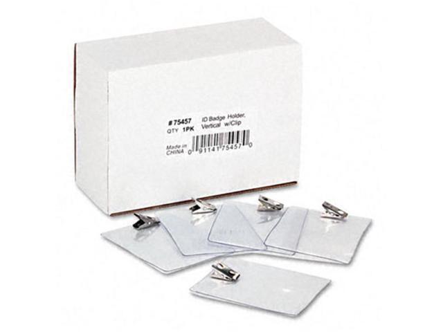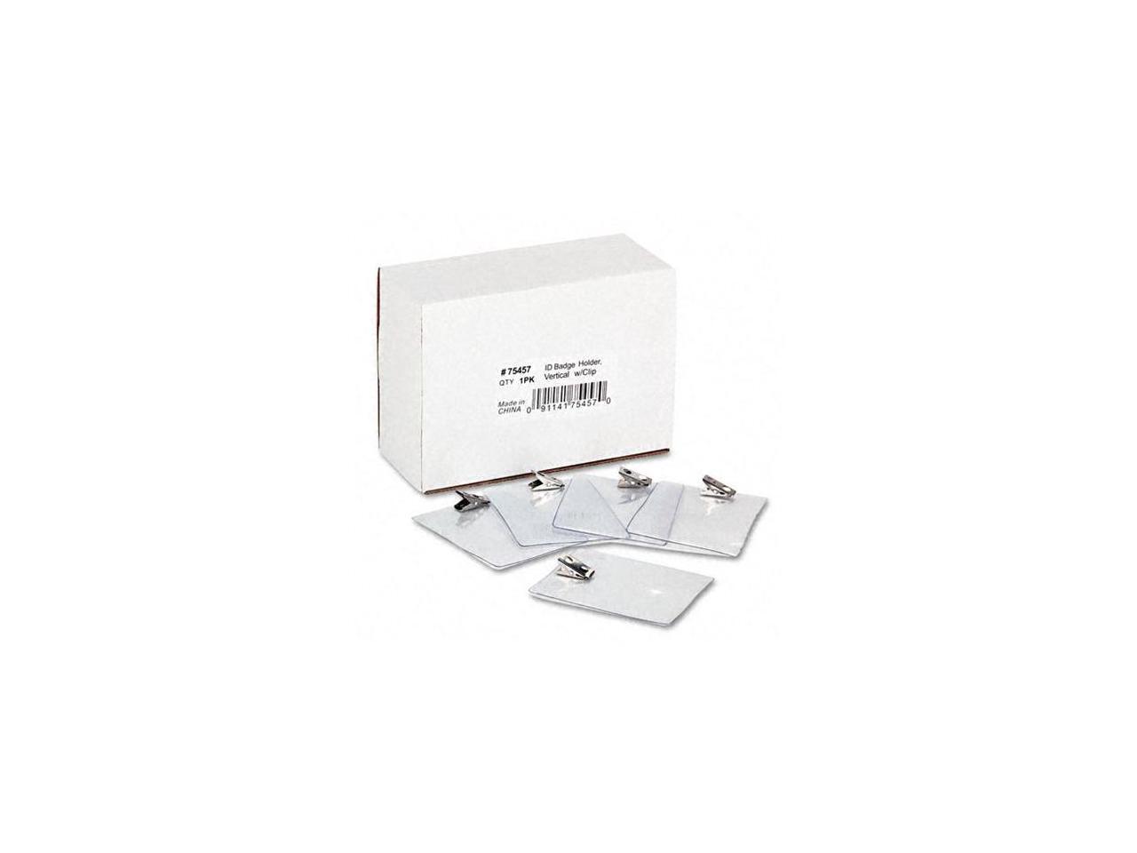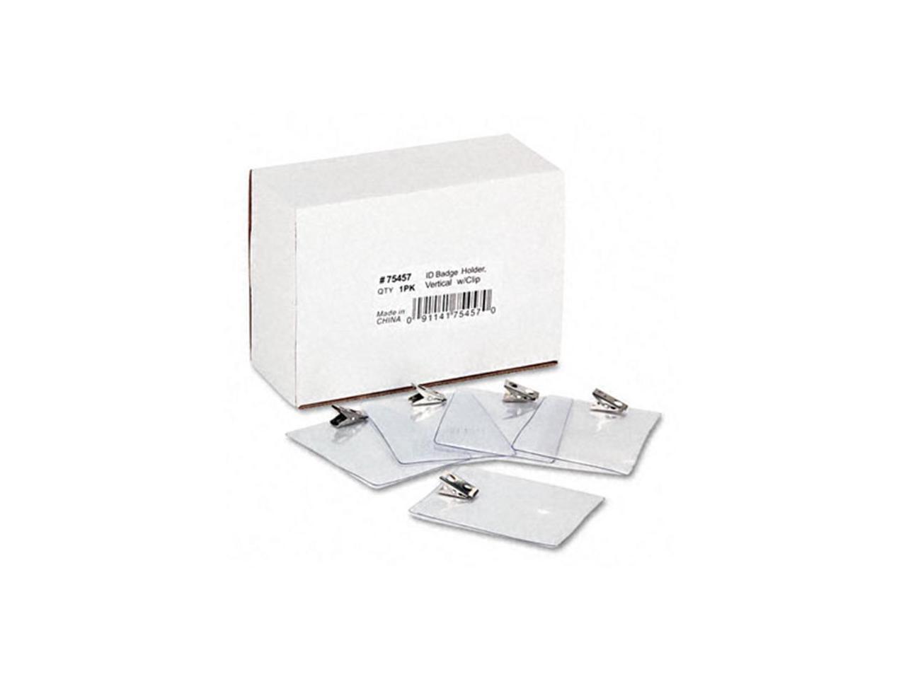 Id Badge Holder W/Clip, Vertical, 3W X 4H, Clear, 50/Pack