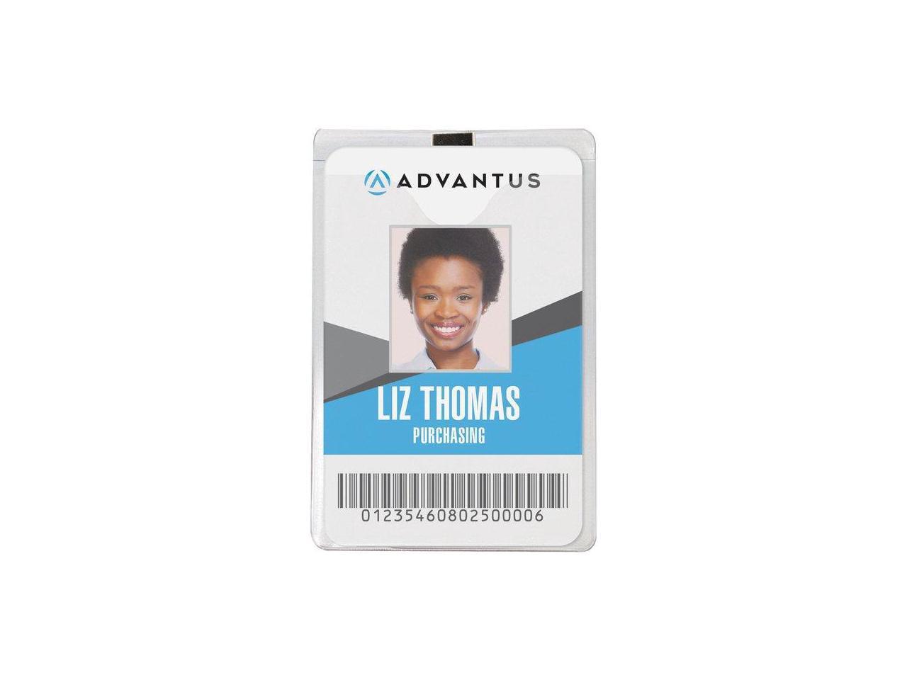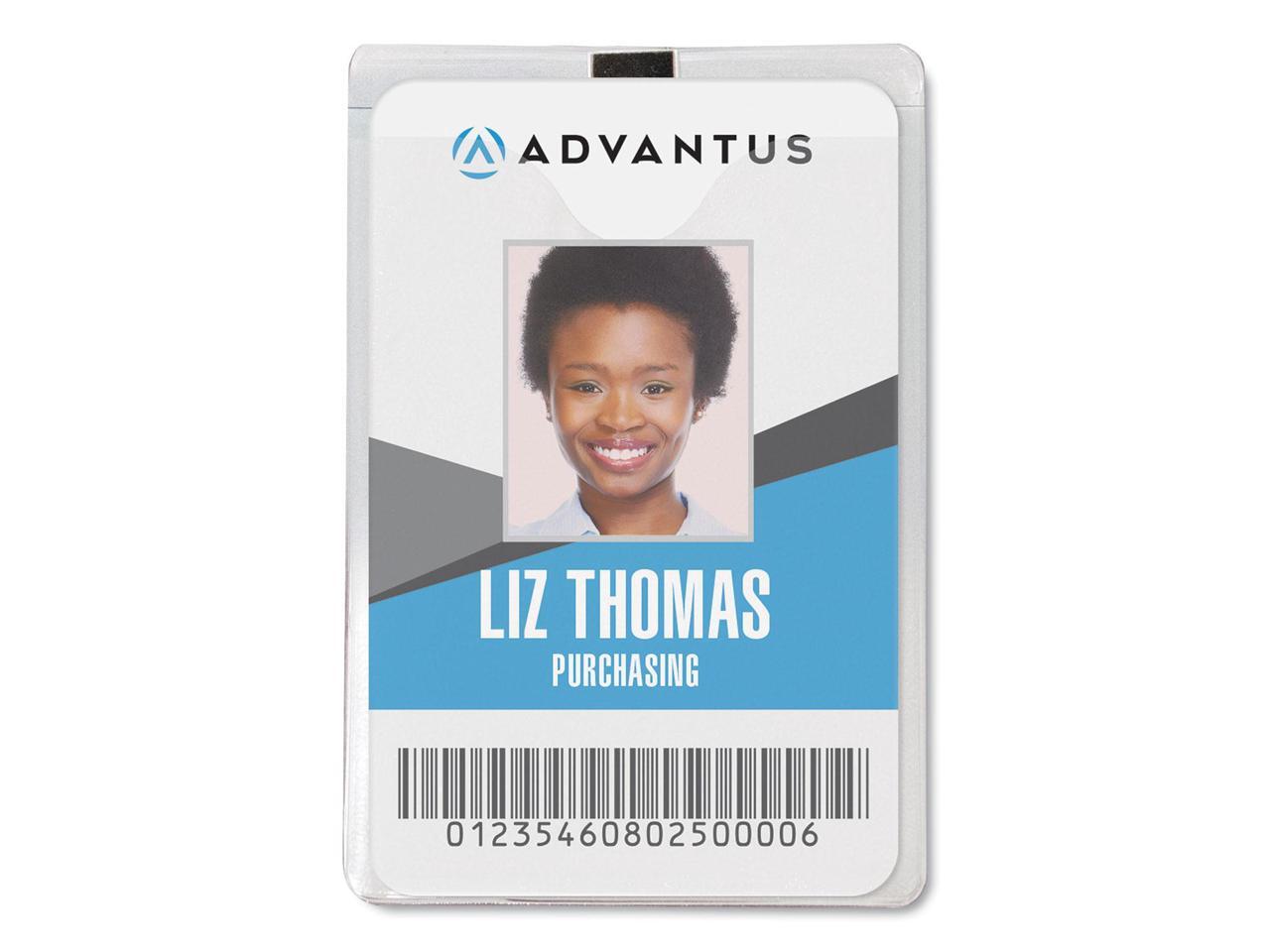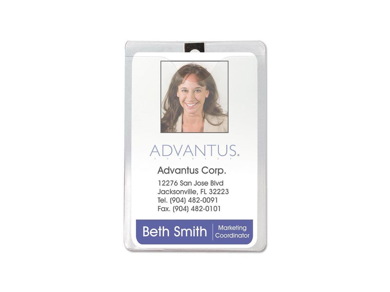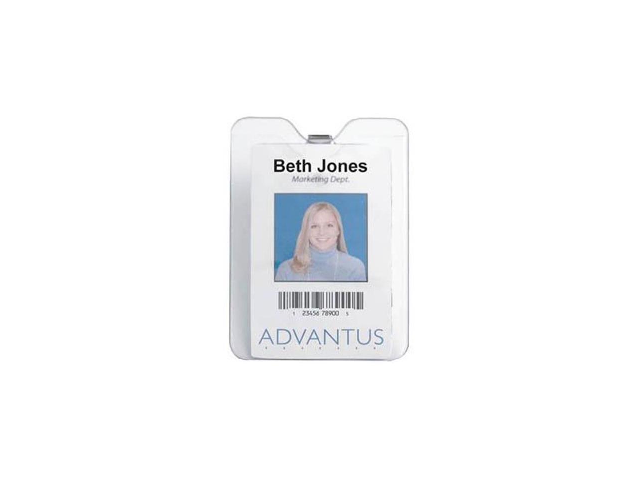 Id Badge Holder W/Clip, Vertical, 3W X 4H, Clear, 50/Pack