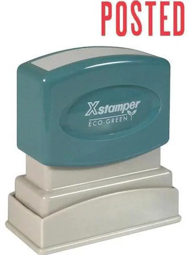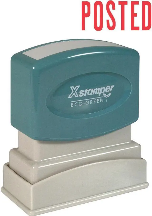 Xstamper POSTEDTitle Stamp - Message Stamp - "POSTED" - 0.50" Impression Width x 1.63" Impression Length - 100000 Impression (s) - Red - Recycled - 1 Each Red ink POSTED Title Stamp is pre-inked for 100, 000 impressions and re-inkable for 100, 000 more, again and again. Patented cellular inking process delivers clean, consistent impressions. Retractable frame keeps stamp surface away from desktop until ready to use. Impression size is 1/2" x 1-5/8". Pre-inked stamp contains a high percentage of recycled material.