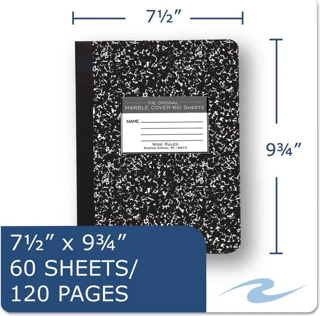 - Perfect for note-taking and more. - Black Marble, hard cover composition book is center sewn for durability and strength. - Features college-ruled, 15 lb. paper. - Sold as 1 Each.