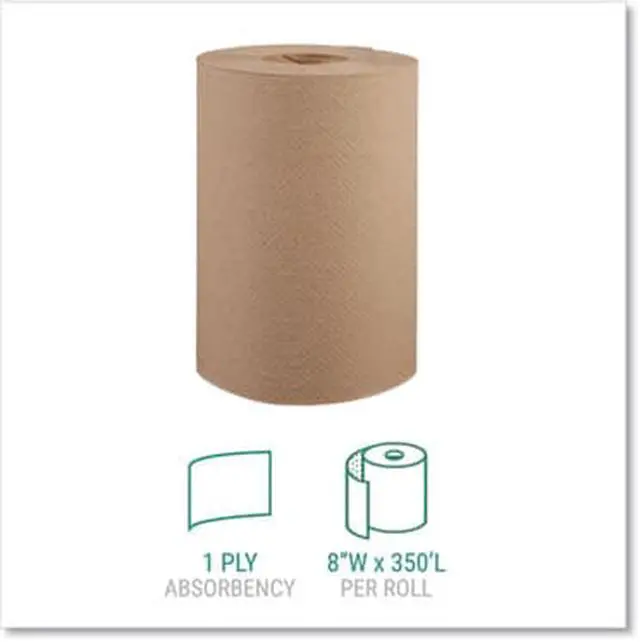 Roll towels are designed for hardwound roll towel dispensers. Quality construction enables multipurpose versatility. Absorbent. Towel/Wipe Type: Hardwound Roll Towel; Application: Hand Washing; Washrooms; Material(s): Paper; Number of Plies: 1.