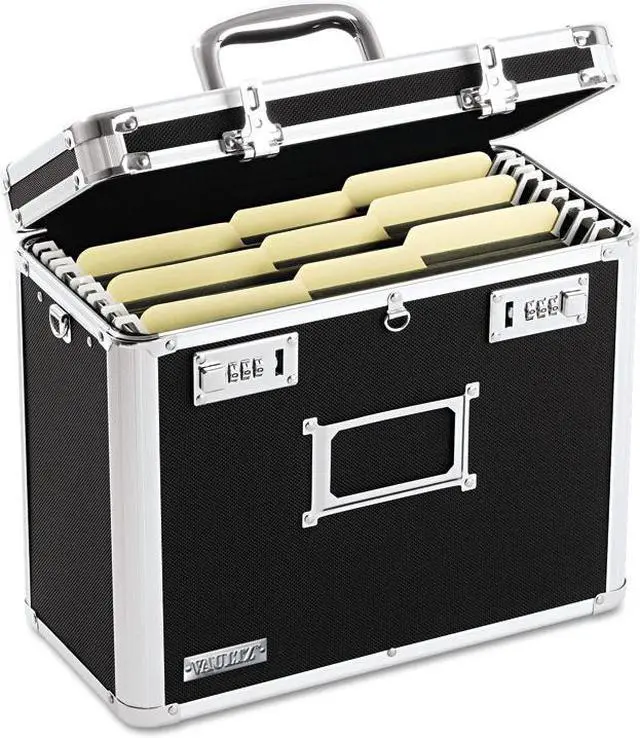Secure your important files for transport. Internal rails are sized for letter-size hanging file folders. Double combination locks provide convenient security, while the comfortable chrome handle makes it very portable. Chrome steel corners and aluminum rails offer strength. Rubber feet prevent surface scuffing.