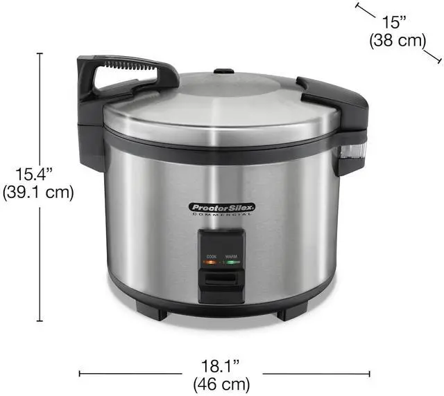 KEEPS RICE WARM AND READY TO SERVE: The Proctor Silex Commercial Rice Cooker holds 60 cups of cooked rice ready to serve and is ideal for restaurants that serve high volumes