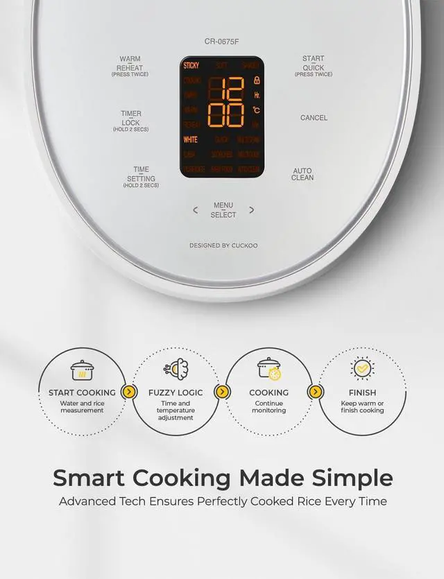 COOKING MADE SIMPLE: Equipped with Fuzzy Logic Technology, our CUCKOO rice cooker guarantees perfectly cooked rice every time. It automatically adjusts cooking time and temperature to ensure your rice is never burnt, delivering superior results with minimal effort.