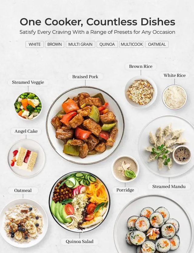 GREAT FOR BUSY FAMILIES: Packed with useful features like quick white rice and a timer setting + warming mode, this rice pot ensures your food is ready whenever you are. Perfect for busy individuals or families on the go.