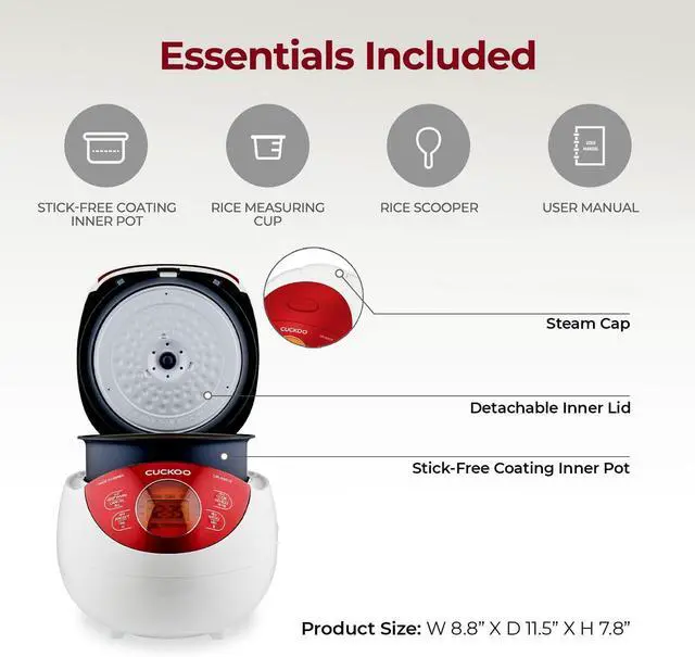 Included Accessories: Comes with a product manual, rice spatula, and rice measuring cup
