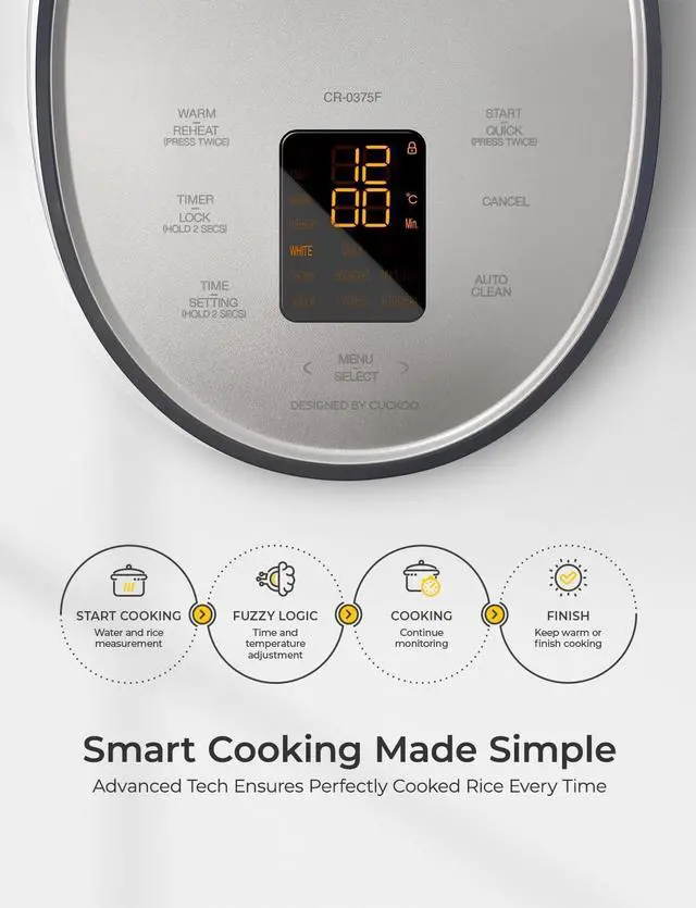 COOKING MADE SIMPLE: Equipped with Fuzzy Logic Technology, our CUCKOO rice cooker guarantees perfectly cooked rice every time. It automatically adjusts cooking time and temperature to ensure your rice is never burnt, delivering superior results with minimal effort.