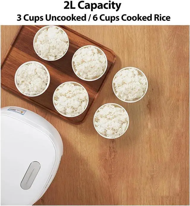 Compact Size: This 2L capacity uncoated rice cooker can cook 4 cups of uncooked or 8 cups of cooked rice, ideal for 1-3 people. Measuring 27*26*21cm( 10.6 " x 10.2 " x 8.3 " ), it doesn' t take up much kitchen space.