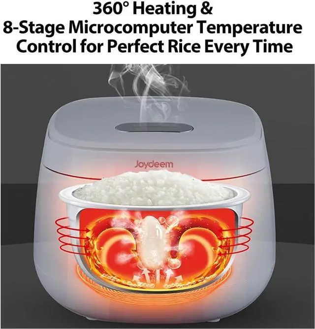 Fully Heated Rice: The microcomputer of Joydeem ceramic rice cooker allows for 8-stage temperature control. Its inner pot' s suspended shape enables the rice to be surrounded by three-dimensional heating, ensuring even heating and plump, tender grains.