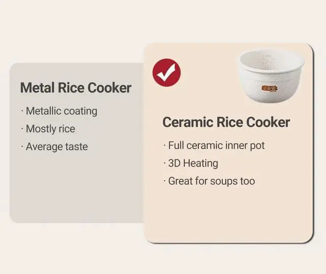 New Cooking Experience: Our rice cooker is made of high-quality natural ceramic materials, which provide better heat conduction and temperature retention, ensuring superior cooking results for your food. This electric ceramic pot also boasts enhanced soup stewing capabilities, offering you a unique cooking experience.