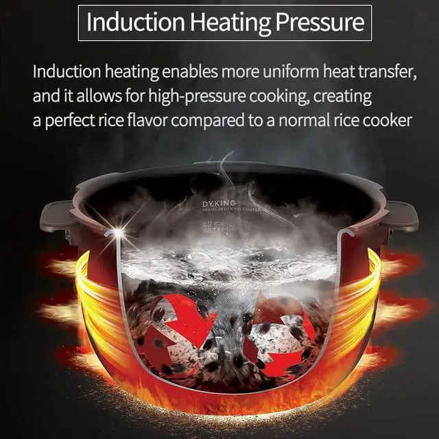 INDUCTION HEATING: In contrast to conventional bottom-plate heating, induction technology envelops the inner pot entirely, resulting in a faster and more efficient cooking process, ultimately yielding more delectable outcomes.
