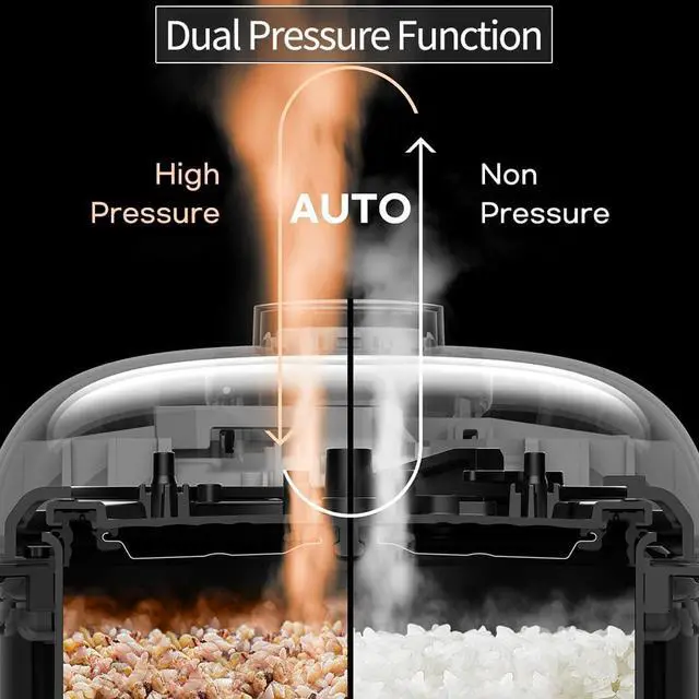 DUAL PRESSURE: Cooking with High Pressure will Result in Deliciously Sticky Glutinous Rice, While Cooking without Pressure will Yield Unbelievably Fluffy Rice.