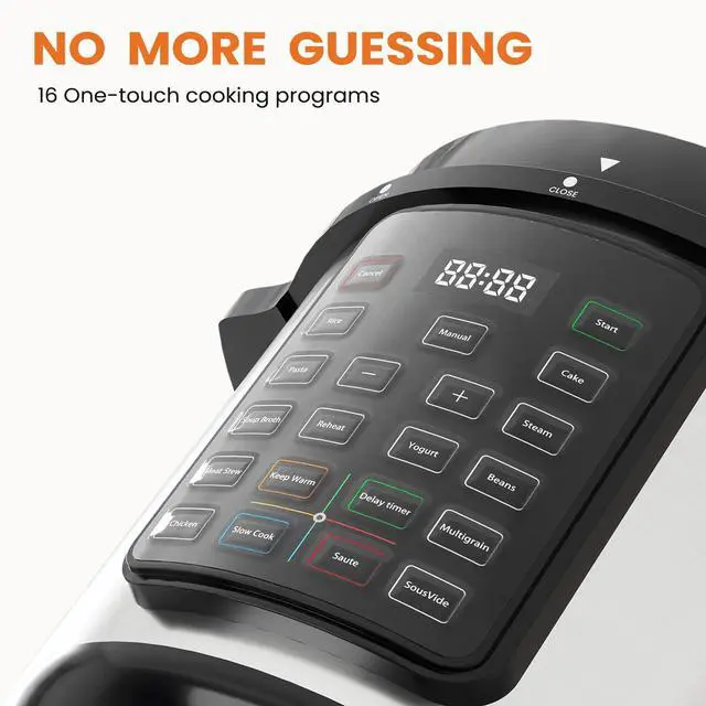 SAFETY PROTECTION: Includes 16 safety functions, including safety locking cover, exhaust valve protection, overflow protection, overheating protection, seal ring are made of float valve silicone cap, Improve cooking efficiency.