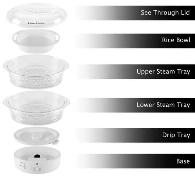The see-through steamer tiers allow you to easily view the food inside, so you can check the cooking progress without having to open the lid.