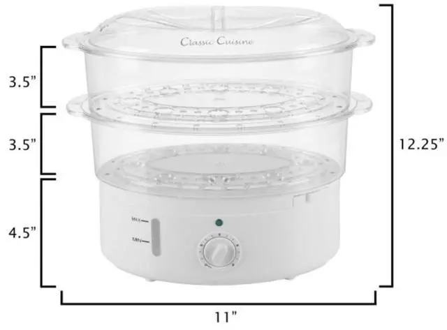 This versatile 2-tiered food steamer is the ultimate solution for cooking healthy and delicious meals with one convenient kitchen appliance. This cooker features a 6.3-quart capacity that can accommodate enough food for a small family or a gathering of friends, perfect for preparing meals for any occasion. Cook all your favorite meats, seafood, grains, and veggies with this 2-in-1 cooking appliance to save time and avoid calories from added fat.
