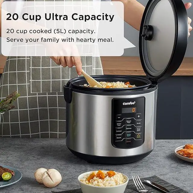 Rice Cooker 10 cup Uncooked/20 cup Cooked , Rice Maker, Steamer, Saute, Steamer and Warmer, 5.2 QT Large Capacity, Brown Rice, Quinoa and Oatmeal, 8 One-Touch Programs