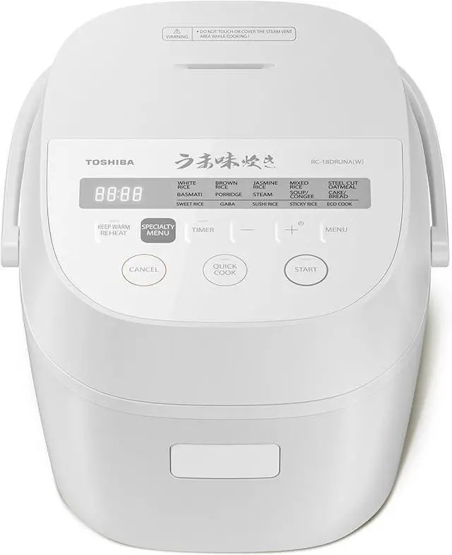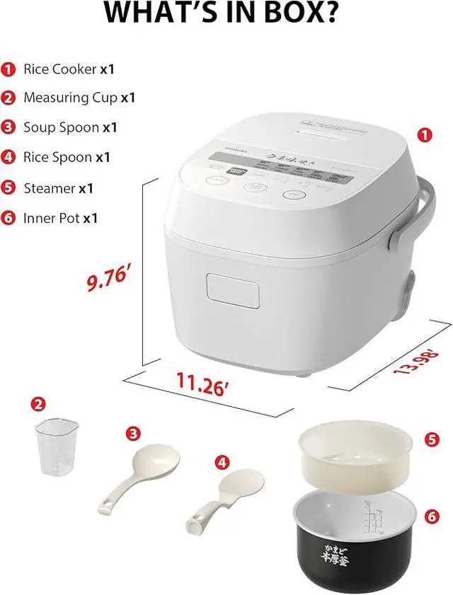USER-FRIENDLY DESIGN: Large LCD display control panel for simple operation, with included measuring cup, rice spatula, soup ladle, and steaming basket.