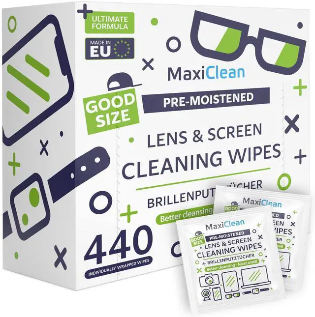 Discover the crystal-clear world with MAXI CLEAN eyeglass cleaner wipe, your ultimate solution to keep your vision spotless and unobstructed. These pre-moistened touch screen cleaning wipes are meticulously crafted to cater to all your screen cleaner needs. Whether it's your favorite pair of eyeglasses, the laptop screen you stare at all day, or the delicate lenses of your cherished binoculars, these lenses wipes for glasses are engineered to provide a streak-free shine without any residue. Wet wipes individually wrapped and have innovative formula ensures there's no harsh smell, making your cleaning experience pleasant and refreshing.