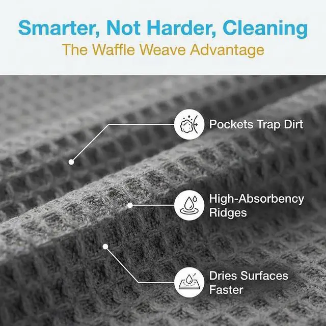 Our microfiber cleaning rags are engineered to trap dust, dirt, and grime without leaving behind any lint or streaks. This means you can clean with confidence, knowing you'll achieve a spotless finish on any surface. The high absorbency of FairyWaffle lint free cleaning cloth sets it apart, allowing for efficient cleaning with less water and fewer cleaning products.